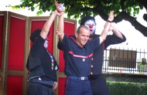 AH OUI ! pour conclure avec le festival Eclat, une spécial dédicace à ce monsieur, arrivé par le plus grand des hasards au moment du spectacle ou Riquette et Gaston rêvait, quand il serait grand, de devenir pompier !